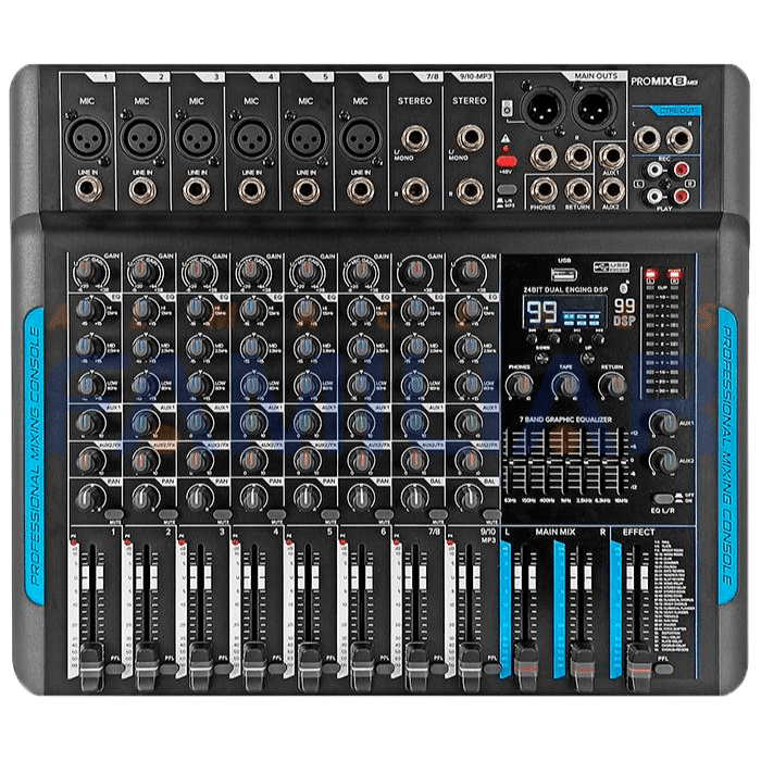 La Consola Sonic Promix8 MK2 de 8 canales es la aliada perfecta para DJs que buscan potencia, calidad y control total. Encuéntrala exclusivamente en Almacenes Familiar y lleva tus mezclas al siguiente nivel.