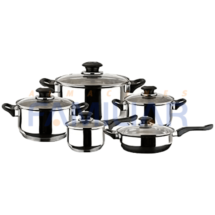 Disfruta de la calidad y durabilidad con el JUEGO DE OLLAS 10 PIEZAS INDUCCIÓN , ideal para todo tipo de cocinas, incluyendo inducción. Este juego de ollas está fabricado en acero inoxidable con tapas de vidrio termo-resistentes y fondo termo-difusor que garantiza una distribución uniforme del calor. El JUEGO DE OLLAS 10 PIEZAS INDUCCIÓN en la cocina.