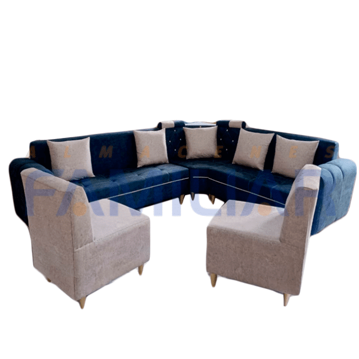 - Materiales: Estructura de madera resistente y tapizado en tela de alta calidad