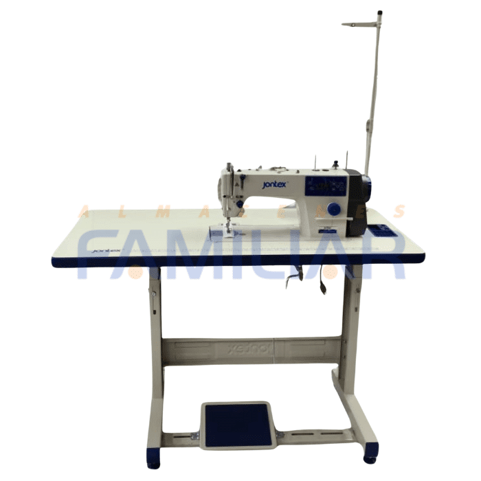 La MAQUINA RECTA INDUSTRIAL JONTEX es una máquina recta industrial de alta velocidad, diseñada para ofrecer precisión, resistencia y productividad en confección. Su sistema de corte de hilo automático la hace ideal para talleres y fábricas de costura que buscan optimizar tiempo y mejorar acabados.
