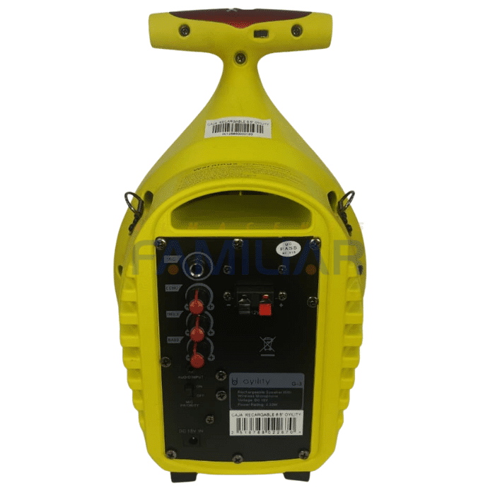 Pero eso no es todo: el Oyility 6.5″ también cuenta con un puerto USB que te permite reproducir música directamente desde un pendrive, y un micrófono incorporado para que puedas dar rienda suelta a tu pasión por el karaoke o hacer anuncios en eventos pequeños. Con una batería recargable que ofrece de 4 a 6 horas de duración, podrás llevarlo a cualquier lugar sin preocuparte por quedarte sin energía. Su diseño portátil y ligero lo convierte en el compañero perfecto para fiestas, reuniones, y momentos de diversión al aire libre. ¡Haz que tu música suene donde sea que vayas con el Parlante Oyility!