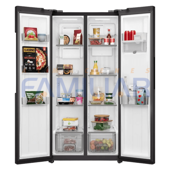 La REFRIGERADORA ELECTROLUX ERSA45F3Q5EB SIDE BY SIDE está diseñada para quienes buscan elegancia, capacidad y tecnología en un solo equipo. Con un amplio interior de gran organización y un diseño moderno Full Black, esta refrigeradora transforma por completo la experiencia en tu cocina. Su sistema No Frost mantiene los alimentos frescos por más tiempo sin generar escarcha, mientras que la tecnología Inverter optimiza el consumo energético para un funcionamiento más silencioso, estable y eficiente. Gracias a su práctico dispensador de agua, panel digital y espacios inteligentes para frutas, verduras y congelados, cada uso se siente cómodo y funcional. Además, sus puertas estilo americano permiten acceder fácilmente a todo, manteniendo una apariencia sobria y sofisticada. Ideal para familias que necesitan mayor capacidad, la Electrolux ERSA45F3Q5EB combina rendimiento, estilo y conveniencia para ofrecer una experiencia premium en tu hogar todos los días.